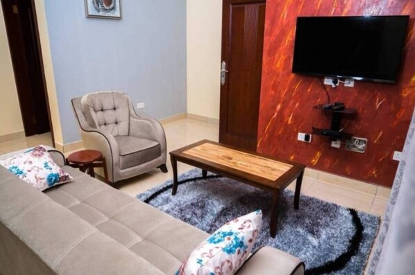Steps from spintex road and 30 minutes from the hustle and bustle of downtown Accra, find this stylish, spacious and well-furnished apartment. It includes a cosy patio, open-plan living and dining space, with inventive pops of color and eclectic contemporary artwork throughout.