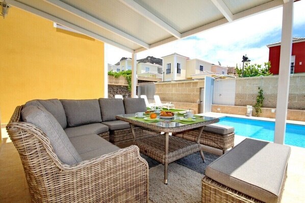 We had a fantastic time in Costa Adeje! The villa was beautiful and modern with everything we needed. Having five en suite rooms was great so our grown-up kids had their own space too. We hadn’t realised one of the bedrooms is accessed through another bedroom - didn’t cause any issues but something to be aware of. The location was great - with a supermarket and lots of restaurants 5 min walk away. The beach was about 15mins walk and plenty more restaurants and bars there too. So no car needed and easy to get taxis if you want to go further afield.