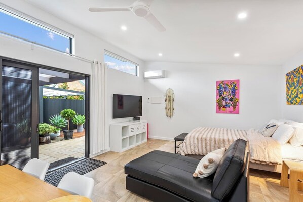 Alle Zimmer bei EcoBee Studio|Convenient, Secure & Spacious in Garden Serenity bieten Extras wie eine Klimaanlage sowie Ausstattungsmerkmale wie kostenloses WLAN und Esstische.