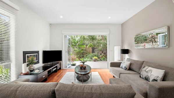 Willkommen im AIREYS OASIS, einem wunderschön eingerichteten Stadthaus in zentraler Lage, nur einen kurzen Spaziergang von allen Annehmlichkeiten in der Aireys-Bucht entfernt, einschließlich des Gemischtwarenladens, des Aireys-Pubs, der örtlichen Restaurants, der Eagles Nest Gallery und einer kurzen Fahrt nach Lorne, Anglesea, Bells Beach und Torquay. Im Erdgeschoss befinden sich eine offene Küche mit Ess- und Wohnbereich, eine Gästetoilette und eine separate Wäscherei mit Stauraum für die Strandausrüstung. Das Wohnzimmer öffnet sich zu einem fantastischen Außenbereich mit Wasserspielen, die ein Gefühl der Ruhe vermitteln. Es gibt verschiedene Bereiche, in denen Sie bei einem guten Buch, einem guten Grillabend und / oder einer guten Flasche Wein entspannen können. Alternativ gibt es jede Menge Brettspiele, die Sie amüsieren.