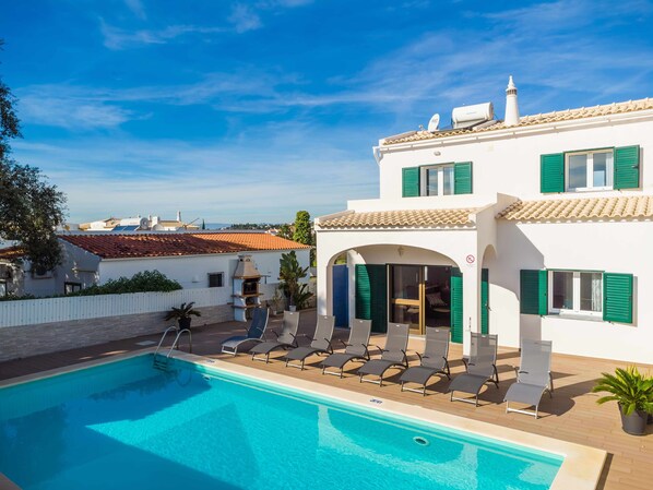 Das Ferienhaus Villa Sol liegt in Guia und ist die ideale Unterkunft für einen entspannten Aufenthalt. Die zweistöckige Unterkunft verfügt über ein Wohnzimmer, eine Küche, 4 Schlafzimmer und 4 Badezimmer und bietet Platz für bis zu 8 Personen. Zu den weiteren Annehmlichkeiten gehören WLAN, Fernseher, Klimaanlage und Waschmaschine. Ein Babybett und ein Hochstuhl stehen ebenfalls zur Verfügung. Im privaten Außenbereich erwarten Sie ein Pool, ein Garten und ein Grill.