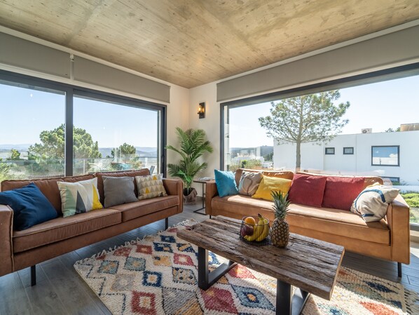 Our home can comfortably sleep 6 people and there are air-conditioning units the bedrooms. The home comes fully furnished with high-quality Portuguese bed linens and towels, three flat-screen TVs with satellite channels, a large dining area, and a fully equipped kitchen including Samsung appliances (fridge, oven, dishwasher), Nespresso coffee machine, electric kettle, juicer, immersion blender, toaster, microwave, iron and washing machine. For digital nomads, there is WiFi throughout the house (both on the top and bottom levels). The house is decorated with original works by a local artist.
