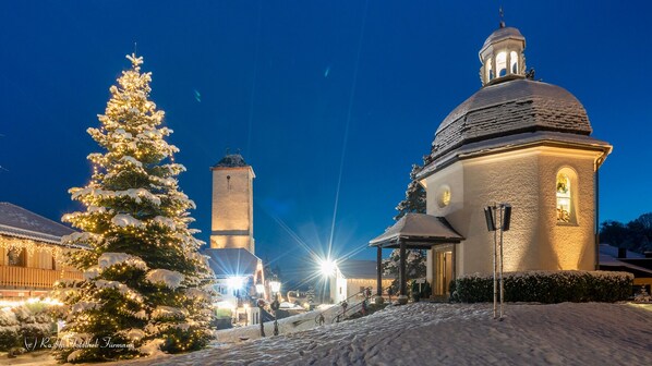 Genießen Sie die frische Bergluft auf dem Balkon oder der Terrasse, wo Sie den Blick auf die umliegende Landschaft schweifen lassen können. Für die aktiven Gäste bieten sich zahlreiche Wander- und Radwege direkt vor der Haustür an. Im Winter können Sie die nahegelegenen Skigebiete erkunden und sich nach einem aufregenden Tag in der Natur entspannen.Ob mit oder ohne Anstrengung am Tag, ein heißer "Jagatee" oder Glühwein am Kachelofen in der gemütlichen Stube ist eine wohlverdiente Krönung nach einem kalten Wintertag.