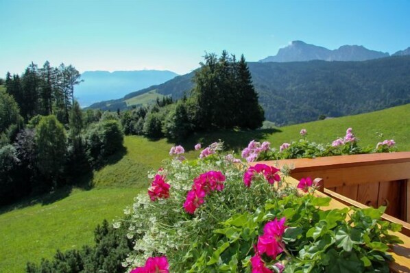 Neu renoviert in 2022: Die Ferienwohnung "Panorama-Eckerl" bietet eine grandiose Aussicht auf den Hochstaufen, den Untersberg, den Högl und je nach Wetterlage weit nach Österreich hinein.Die sehr geschmackvoll eingerichtete Ferienwohnung befindet sich in der ersten Etage unseres Hauses.Eine Wohnküche mit moderner Kücheneinrichtung (Geschirrspüler, Herd mit Ceranfläche und Backrohr, Mikrowelle, Kaffeeautomat, Kühl-Gefrierkombination, Nespresso-Kaffeemaschine), Eckbank, Sitzecke, TV und Radio steht für Sie bereit. Ebenso ein Schlafzimmer mit Doppelbett und ein modernes Duschbad. Vom Balkon genießen Sie eine traumhafte Aussicht. Endreinigung nach Vereinbarung. Bei Durchführen der Endreinigung durch unser Team fällt eine Pauschale von 60,- EUR an.