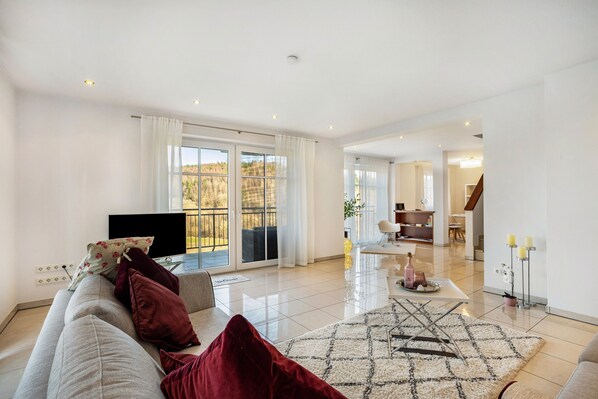 Auf großzügigen 145 qm verbindet die Wohnung eine zentrale Lage in der historischen Altstadt mit einem beeindruckenden Panoramablick über das idyllische Lennetal. Das Herzstück der Wohnung ist das lichtdurchflutete Wohnzimmer. Genießen Sie die Aussicht und die Ruhe auf Ihrer privaten, teilweise überdachten Terrasse. Die Unterkunft wurde vom Deutschen Tourismusverband mit 4 Sternen ausgezeichnet.