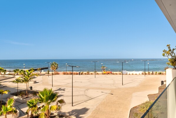 Geräumige Unterkunft von 145 m², einschließlich der überdachten Terrasse, direkt am Meer an der Promenade mit Panoramablick auf den Ozean.