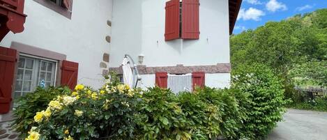 Independent gîte located near the owners' house, on a working farm 6km from St Jean-Pied-de-Port. Ground floor: equipped kitchen (microwave, induction hob), living room, lounge (insert fireplace), pantry, toilet. Upstairs: 2 bedrooms (2 double beds), shower room, toilet. Beds made on arrival, towels and household linen included. Electric heating at an additional cost, wood for the fireplace at an additional cost. Parking. Courtyard, garden with swing. Covered terrace with garden furniture, barbecue. Table tennis. Detached house, renovated former sheepfold, on a working farm.