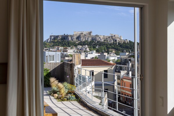MK1 ist ein riesiges, klassisches Loft, das einen atemberaubenden Blick auf die Akropolis und den Panoramablick auf Athen bietet.