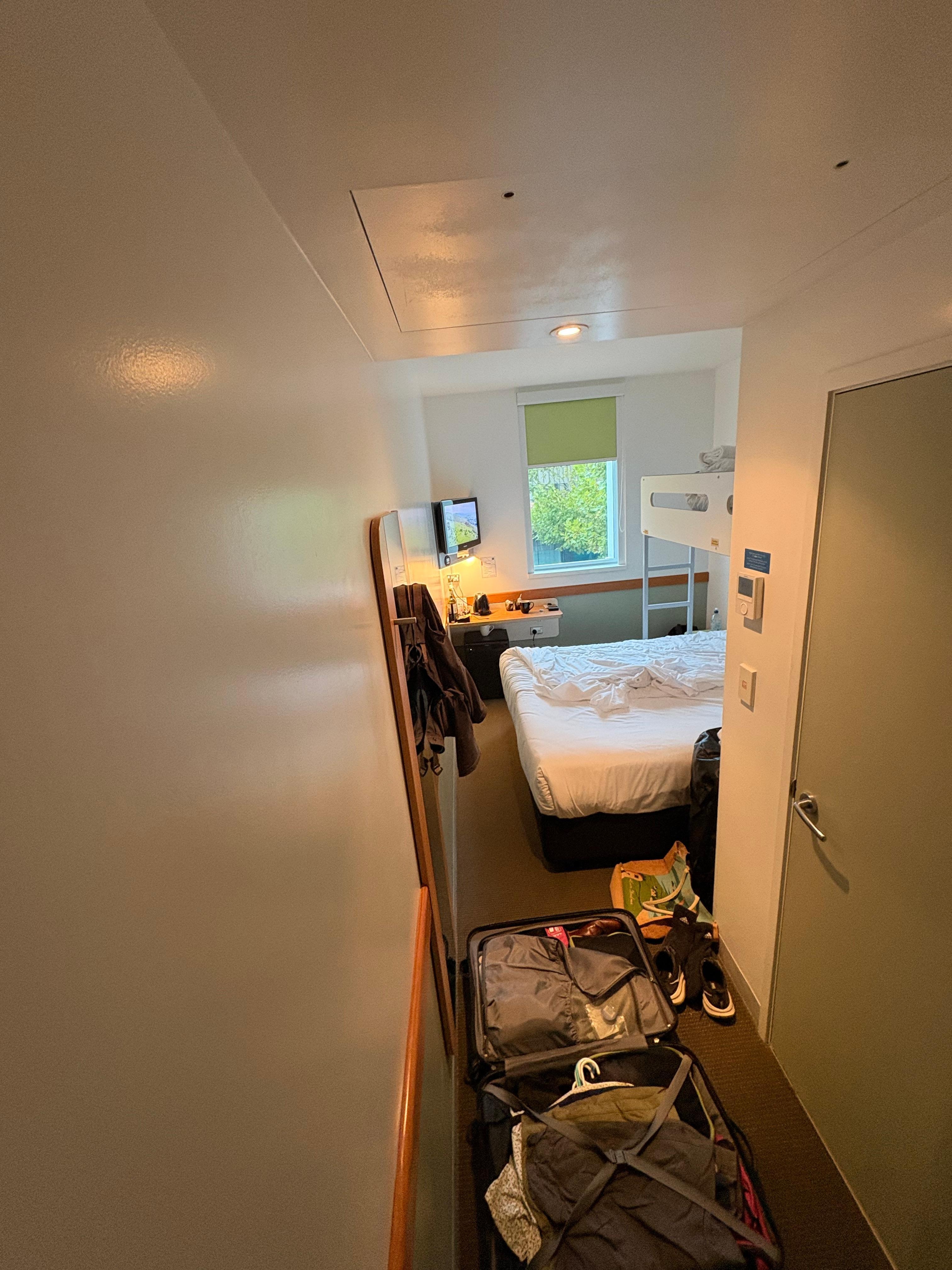 The room is very small — if there are three of you with suitcases it’s almost impossible to open them. It’s best to pack an overnight bag and leave your larger luggage at reception