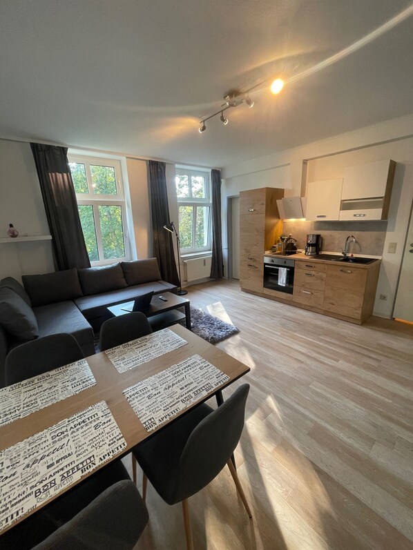 Gemütliches Studio mit Blick auf den Kurgarten