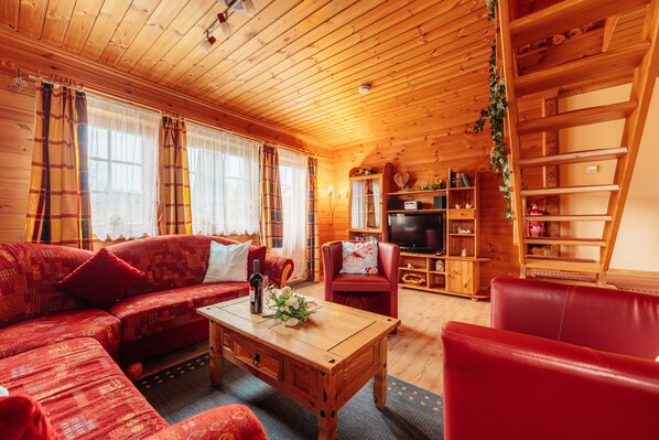 Unser charmantes Blockhaus im idyllischen Südharz bietet Platz für bis zu 6 Personen und ist perfekt geeignet für Urlaub mit Hund (bis zu 3 Hunde willkommen).