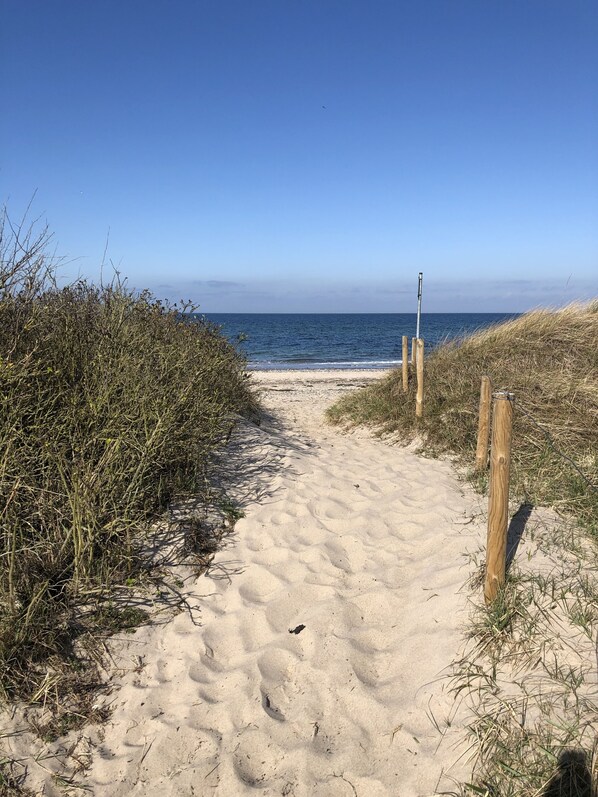 Strand: Der Natursandstrand befindet sich in 800m Entfernung direkt hinter dem Naturschutzgebiet "Riedensee", das hinter dem Haus beginnt.