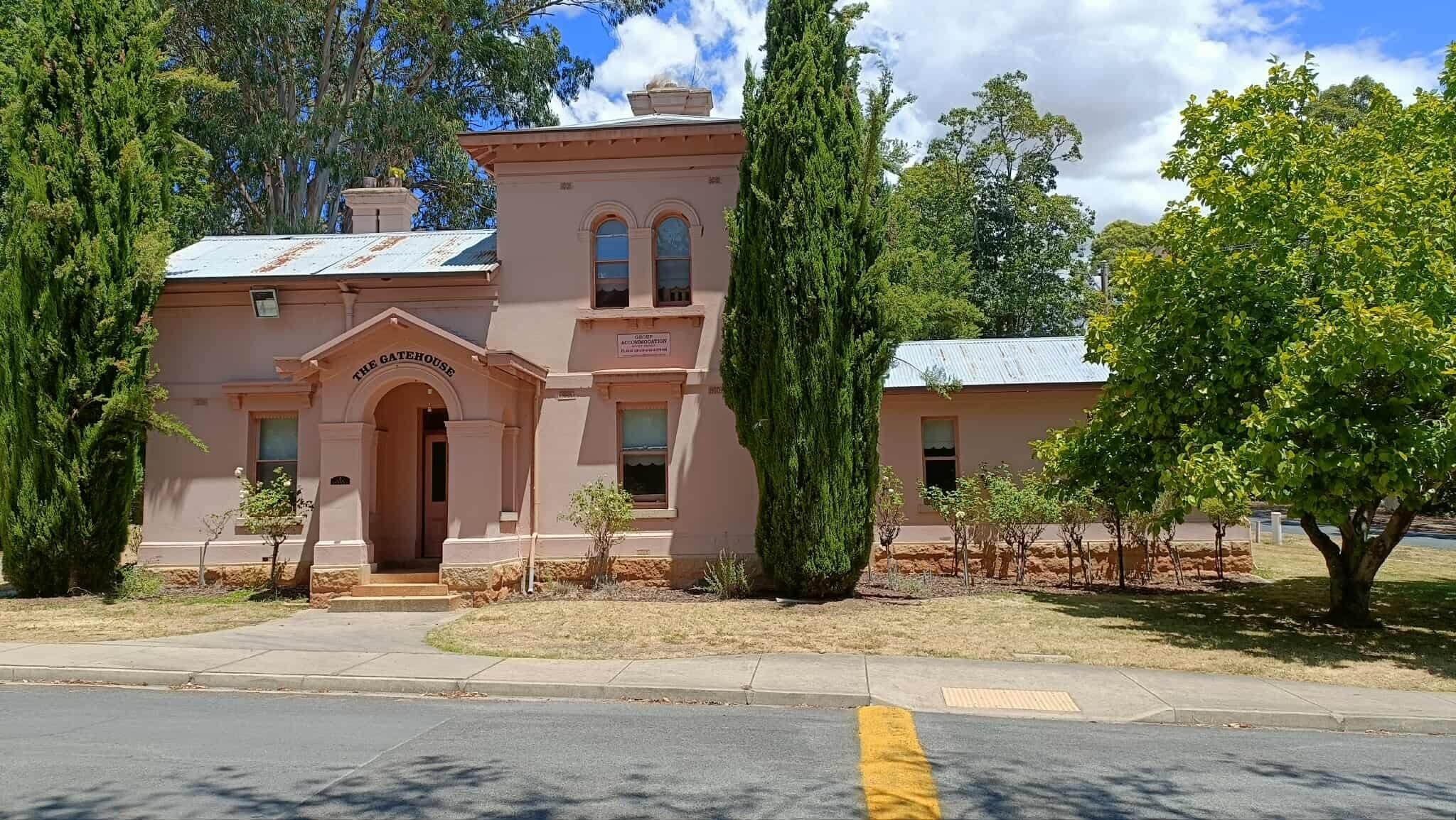 Das Torhaus ist eine bedeutende denkmalgeschützten Gebäude unter den Mayday Hills Gärten in Beechworth gesetzt. Es ist ein schönes Beispiel für ein zweistöckiges italienischen Architektur in den 1860er Jahren gebaut. Der Gatehouse befindet sich in einem malerischen und einer großen Parkanlage von reifen exotischen und einheimischen Bäumen und ist das erste Gebäude auf der schönen Eiche gesäumten Auffahrt am Eingang zum Mayday Hills.