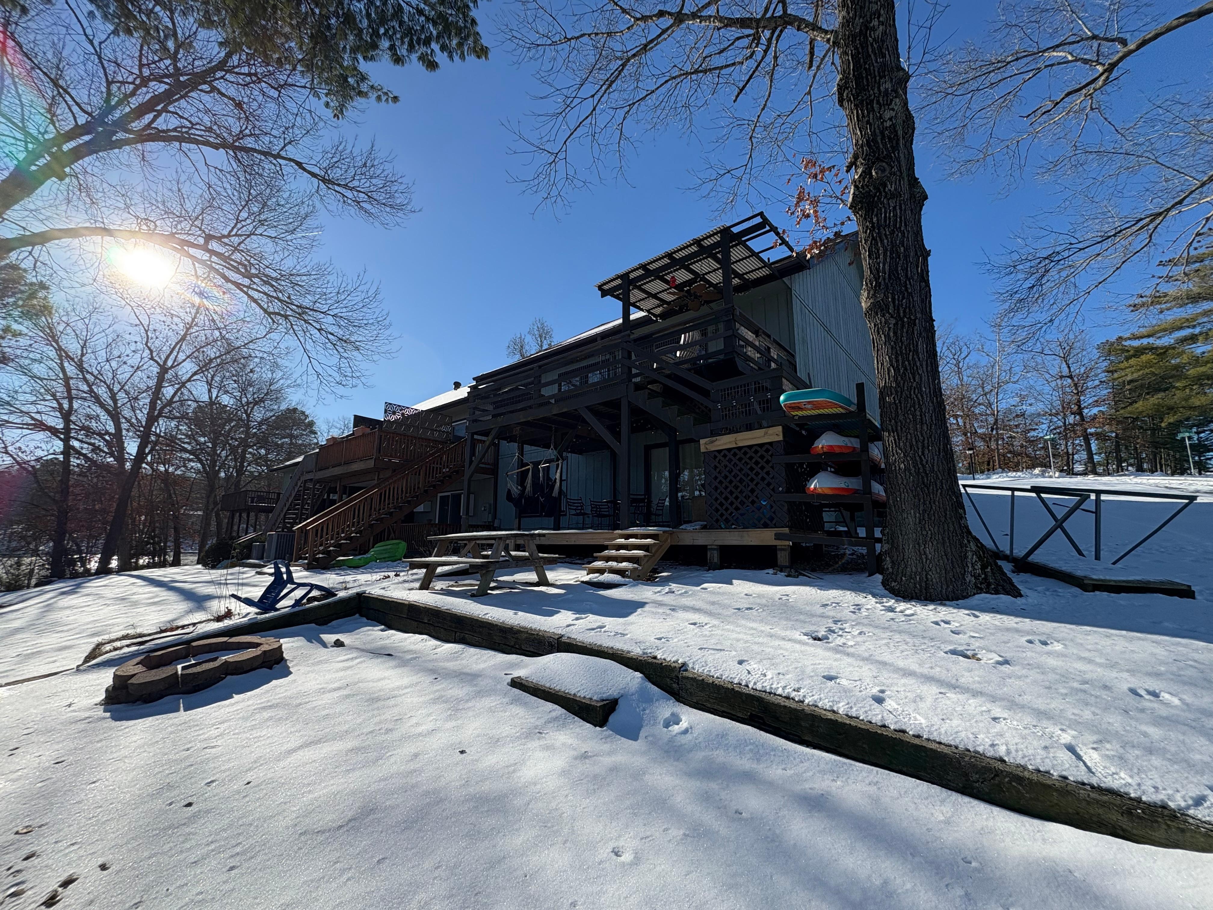 The best lake access on the most peaceful lake in Bella Vista. No matter what season, sunrise or sunset the view from this home is captivating. The Heron House is a fully equipped home for your relaxing getaway or for a fun filled family trip. You will love entertaining your guests on the upper deck with our gas firepit and cozy chairs or fire up the grill and show off your grill master skills