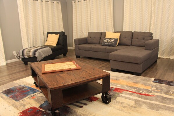 Zur Ausstattung gehören: WLAN-Internetzugang, Holzkamin, Feuerstelle im Freien, neu renovierte Badezimmer, Grill mit Rotisserie, HE-Waschmaschine und Trockner vor Ort und ein Esszimmer mit Platz für acht Gäste.