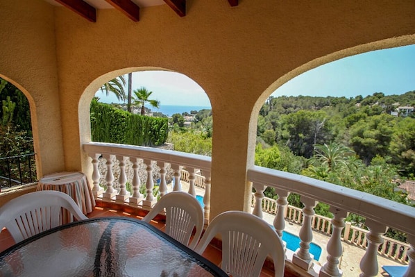 Im Inneren ist die Villa auf Komfort und Bequemlichkeit ausgelegt und erstreckt sich über die obere Ebene. Vom Parkplatz führen Stufen hinunter zu einem geräumigen Wohn- und Esszimmer, das mit einem SAT-TV, DVD-Player und Klimaanlage für Ihren Komfort ausgestattet ist. Die neu eingerichtete, moderne Küche ist komplett für all Ihre kulinarischen Bedürfnisse ausgestattet und bietet direkten Zugang zum Grillbereich. Die Unterkunft umfasst ein Schlafzimmer mit zwei Einzelbetten und zwei Doppelzimmer, von denen eines ebenfalls mit Klimaanlage ausgestattet ist. Ein separates Badezimmer und ein zusätzlicher Duschraum stehen für diese Zimmer zur Verfügung. Das Wohnzimmer öffnet sich zu einem Balkon mit Meerblick und einer Essterrasse, die einen schönen Ort bietet, um Mahlzeiten mit einer malerischen Kulisse zu genießen.