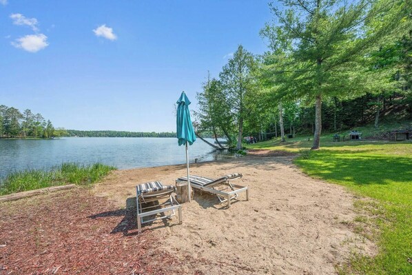 Cozy two bedroom, one bath cabin with a bunk room and private bunkhouse on serene Turtle Lake. Enjoy stunning views, a sandy beach, and peaceful surroundings. Canoe, Paddleboat, Paddleboard and kayak included for lake fun. Relax by the firepit, swim, fish, or unwind. Includes fish cleaning station—your perfect lakeside escape awaits!