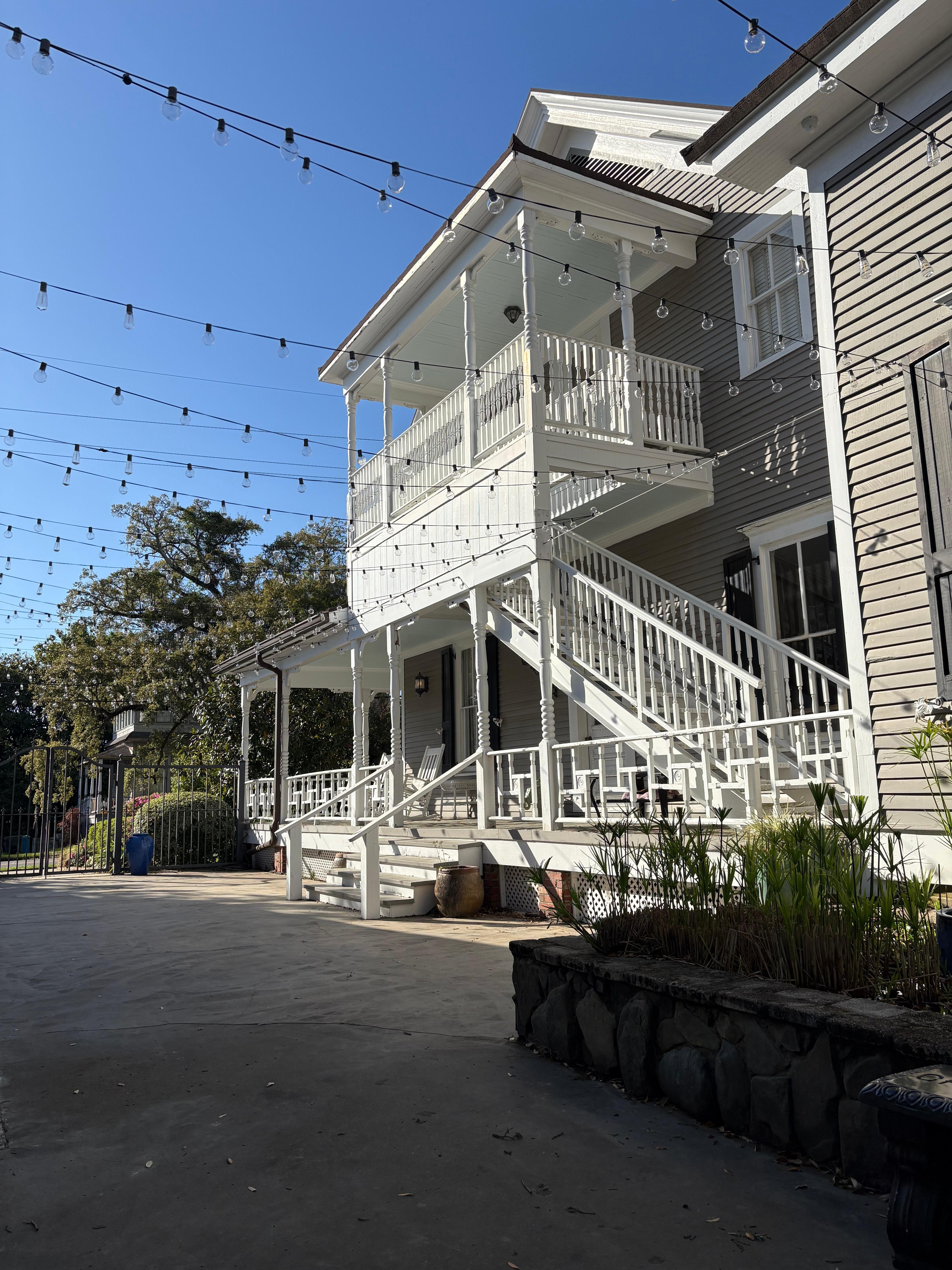 It’s a beautiful house, but the website neglected to include some important information. First, the Grand Ballroom is right next to the house across a very small courtyard. Our room overlooked the courtyard, so for two nights in a row we were unable to get to sleep before midnight because people partied (loudly!) in the courtyard until quite late, which kept the tree frogs going. The sound they made, combined with the sound of people shouting and partying right under our window, was nightmarishly loud. Some people in the courtyard smoked, so we had to deal with allergy-inflaming cigarette smoke drifting into our room. Second, the website did not include information about the sound of freight trains barreling past the house all night, blowing their whistles and shaking the floor and bed. Third, and most importantly, the website did not explain lain that there is no housekeeping service. No beds made, no fresh towels, NOTHING. I found candy wrappers on the nightstand when we arrived. Our towels never dried, and there was never anyone around to ask for fresh towels—and, again, there was absolutely no maid service. For $170