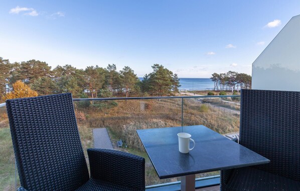 Auf über 40m2 finden Sie hier alle Annehmlichkeiten. Der großzügige, offene Wohnbereich ist dank der großen Fensterfronten lichtdurchflutet, der Blick öffnet sich und kann über den kleinen Kiefernwald bis hin zum türkisen Wasser der Ostsee schweifen. Vom Wohnbereich aus erreichen Sie den Balkon mit hochwertigen Gartenmöbeln. Entspannung pur! Der separate Schlafbereich ist mit einem eigenen TV-Gerät ausgestattet und durch eine moderne Schiebetür vom Wohnraum getrennt. Das Sofa im Wohnbereich kann in zwei weitere komfortable Schlafplätze umgewandelt werden (1,60 x 2,00 m).