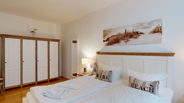 1 Schlafzimmer mit einem Doppelbett, Schrank