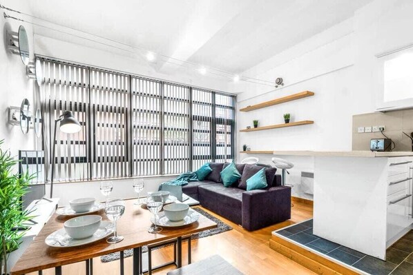 Relax with Situated in the Jewellery Quarter, this modern apartment is conveniently located near train, tram, and bus links for easy access to the city centre. All amenities including shops, restaurants, and cafes, are within walking distance.