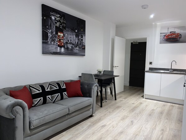 • Living area with sofa, smart tv