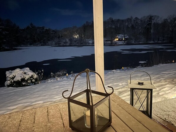 Der Kamin sorgt für Gemütlichkeit am Abend beim Blick ins Feuer.
