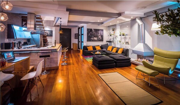 Disfruta de este espectacular penthouse tipo loft de 1500sqf con 3 terrazas privadas y vistas impresionantes de toda la ciudad. Ubicado en la mejor zona de Bogotá, cerca de los principales centros comerciales y vida nocturna, pero en un edificio residencial donde el descanso es prioridad. El penthouse incluye un jacuzzi al aire libre, internet de alta velocidad (200Mbps), Smart TV, Sonido envolvente, pisos de madera y seguridad 24 horas. Además, cuenta con 2 estacionamientos privados.