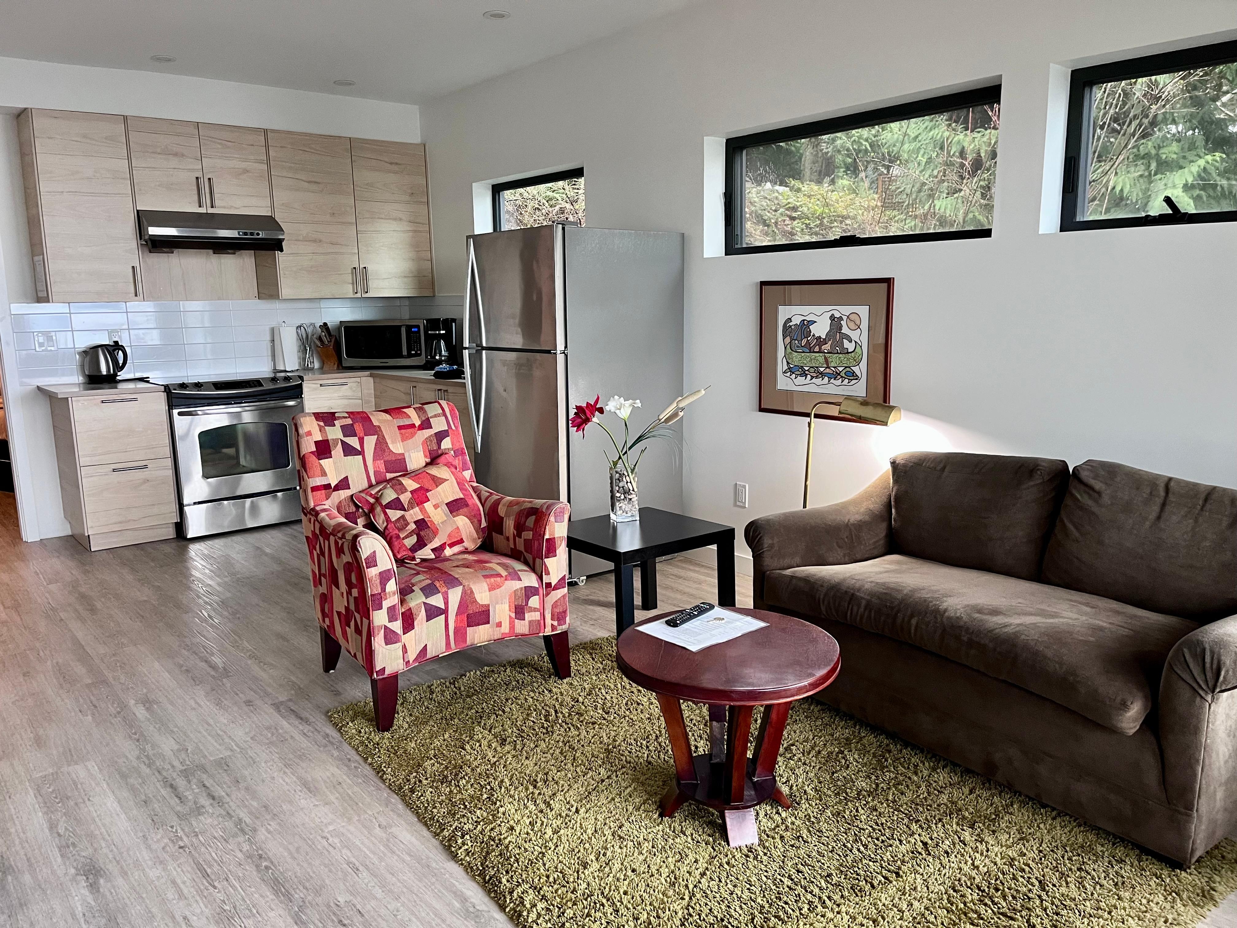 The suite was in great condition, clean and modern. Access is down a steep driveway and you must walk a little ways down. Could be challenging for those with mobility limitations. Also very dark. There was a full kitchen but no cutlery - literally a single spoon. We thankfully did not cook, but would have been very inconvenient. Otherwise, nice view and would stay again. Enjoyed watching the ferries go by.