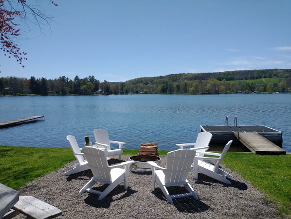 This is a well maintained property with lovely views of the lake from the house. The Adirondack chairs around the fire pit are a great place to sit and watch the boats go by, read a book, or visit. The picnic table nearby was perfect for meals and games. The kitchen had everything we needed to cook our own meals. The beds were great and AC was appreciated on a hot weekend. Communication from the owner was prompt and helpful. Very quiet neighborhood.