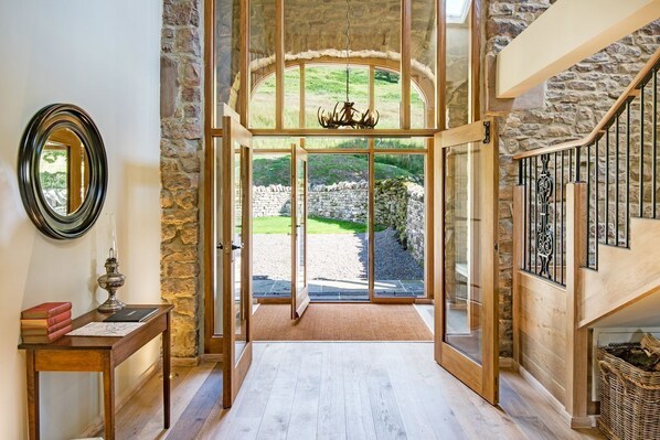 The property benefits from a private south-facing garden with terrace patio, outside seating area and charcoal BBQ. Guests are welcome to explore the wider grounds of the farm and the estate.