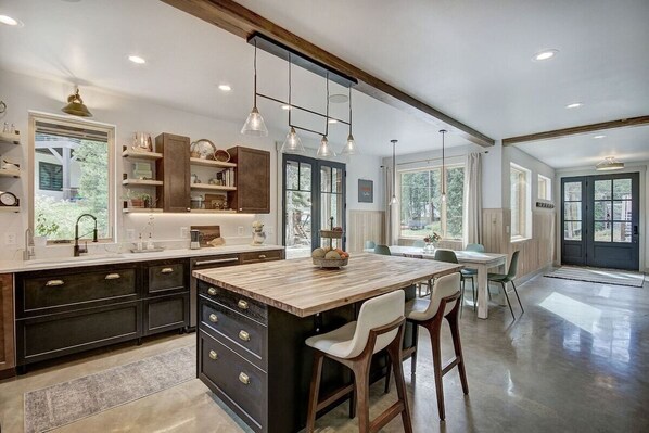 If you are traveling with multiple groups, or just want room to spread out and have privacy, look no further! The second and third levels are also unique in providing private living spaces, including an apartment that can be closed off with a kitchenette, full fridge and coffee bar, separate dining and separate living with additional bedrooms and a full bath. We also intentionally designed the home for retreats, where each of the 10 occupants can sleep in their own bed. It is rare to have this capacity without bunk beds!