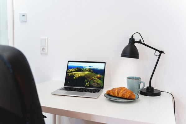 Im Wohnzimmer laden entspannende Abende vor dem Fernseher ein, während das WLAN Sie stets verbunden hält. Und für diejenigen, die auch im Urlaub produktiv sein möchten, steht ein Arbeitsplatz bereit.