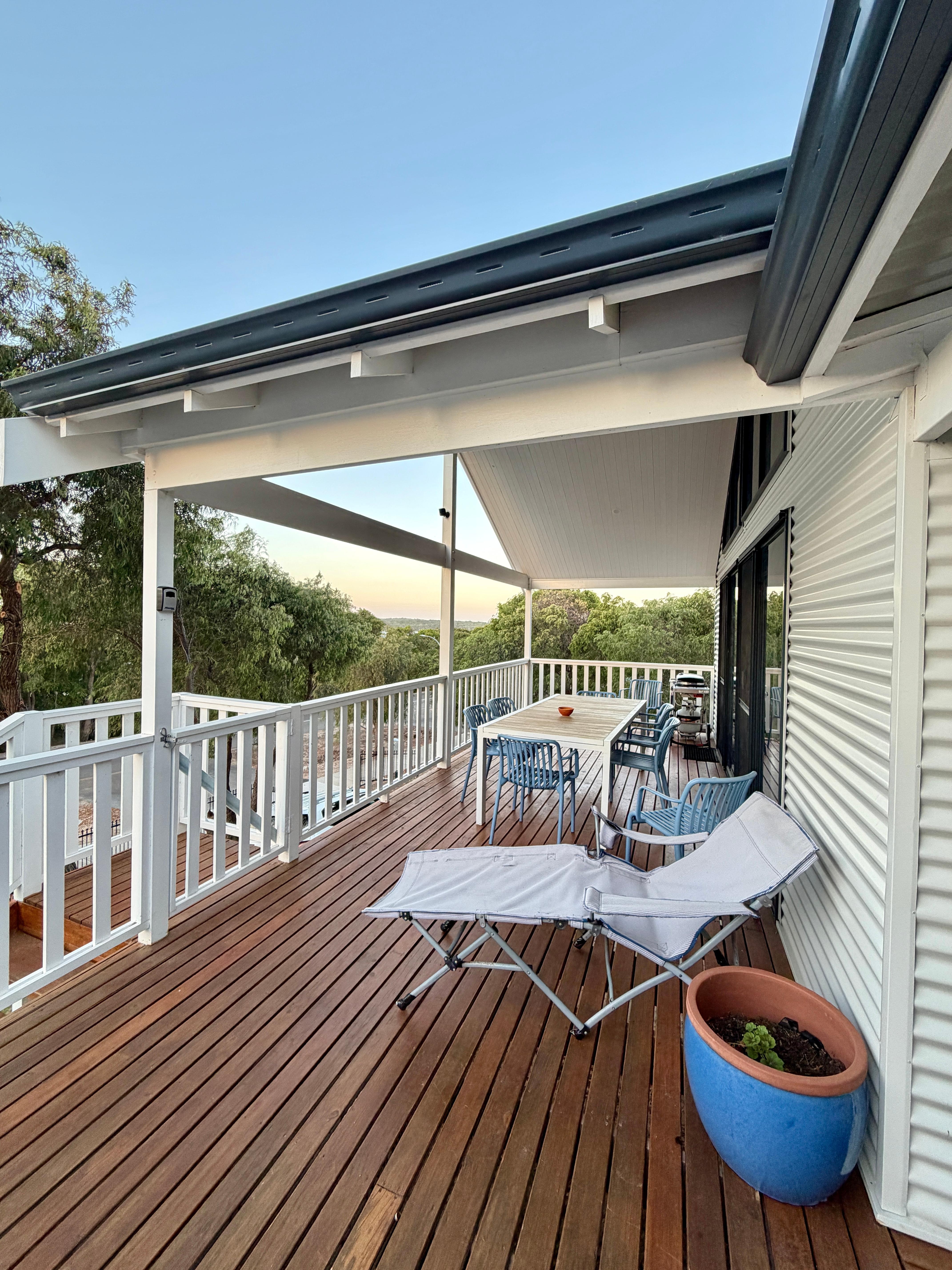 The front al fresco deck is perfect for enjoying a meal or just having a cuppa, reading and enjoying a slower pace of life.