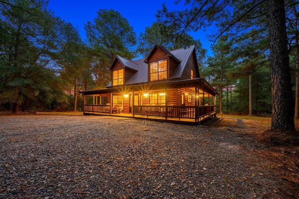 Welcome to The Arrington, your rustic-luxury escape nestled in the heart of Hochatown. Surrounded by towering pines and sitting on over an acre of peaceful forest, this charming two-story cabin offers cozy comfort and modern amenities for your perfect getaway.