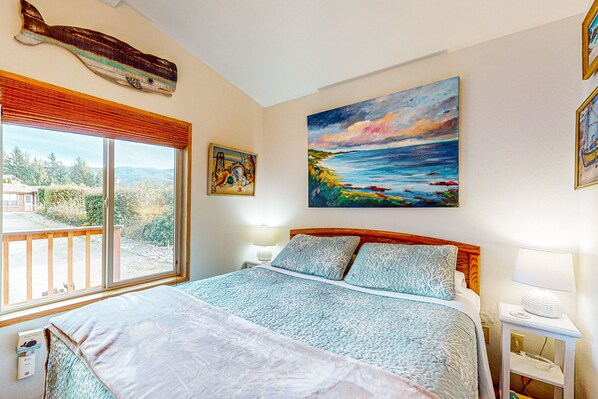 The rest of the house is cozy and comfortable with a mini split system for heating and cooling, large windows and skylights letting in an abundance of natural light and a brand new mattress for your comfort. There's an open kitchen, an eat-in dining area where you can enjoy some of the provided board games and an inviting living area with a Roku-equipped TV with guest mode capability and Spectrum cable to screen your favorite movies each night. A second TV with a Roku awaits you in the bedroom as well. DVD player, DVDs and Oregon Coast themed books also provided.