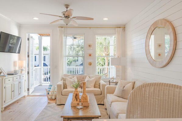 Ort! Ort! Ort! Charmantes Strandhaus in der heißesten Gegend von St. Simons im Süden. Genießen Sie das brandneue, zweistöckige Strandhaus, zwei Balkone, Garage für drei Autos. Nur einen halben Block etwa 80 Meter vom Strandeingang entfernt! Stones Throw Cottage ist fast 1300 Quadratmeter groß und mit wunderschönen Kiefernholzböden, gefliesten Badezimmern, Edelstahlgeräten und Marmoroberflächen ausgestattet. Das Haus ist hübsch eingerichtet mit intelligenten Fernsehern und Internet für all Ihre Bedürfnisse beim Surfen und Filmen. Genießen Sie den großen Bonusraum im Obergeschoss mit einem 60-Zoll-TV. Genießen Sie den Schutz Ihrer Sachen mit der Drei-Wagen-Garage in der Garage. Gehen Sie zu Echo, dem einzigen Strandrestaurant am King & Price Golf / Vacation Resort, das sich nur wenige Blocks entfernt befindet. Spazieren, Fahrrad fahren oder durch die schönen Live-Eichen und das spanische Moos zu den besten Fischrestaurants in St. fahren. Simons in Crab Trap, Crabdaddy's und Iguanas Seafood Restaurant. Das Haus ist nur einen kurzen Spaziergang vom Dorf, den örtlichen Parks und Piers entfernt.