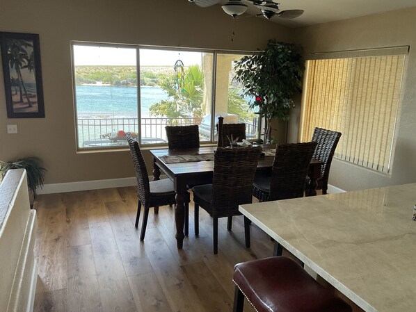 Unsere Riverfront Haus liegt in Bullhead City Arizona über den Casinos in Laughlin Nevada. Unsere vier Schlafzimmer drei Bad Haus ist ideal gelegen, fünf Meilen südlich des Casinos auf der Arizona Seite des Colorado River. Diese 2700 sq. Fuß geräumige Haus ist komplett mit allen Bettwäsche, Papierwaren, Seifen und Kochutensilien ausgestattet. Unser Ferienhaus verfügt über zwei Master-Suiten sowohl mit Kingsize-Betten und zwei weitere Schlafzimmer mit Doppelbetten sowie ein Schlafsofa im Treppe hinunter Aufenthaltsraum und im Obergeschoss Wohnzimmer. Das Obergeschoss Master-Bad verfügt über einen großen Whirlpool sowie eine große Dusche und zwei Waschbecken. Die große im Obergeschoss Gast Bad hat eine Badewanne mit Dusche über sie hat auch zwei Waschbecken. Das Wohnzimmer Esszimmer und Küche sind beide in der Eingangsstufe in der ersten Etage. Das große Wohnzimmer, das mit einem 60-Zoll-Sat ausgestattet ist TVand blue ray player mit Netflix. Das Wohnzimmer offen für eine volle Länge Deck mit einem Propan BBQ und großem Esstisch. Das angrenzende Esszimmer beide auch hat einen freien Blick auf den Fluss haben. Die Küche verfügt über alles, was Sie brauchen, um diesen besonderen Mahlzeit zuzubereiten. Das zweite Schlafzimmer ist im Erdgeschoss mit einem großen Fenster mit Blick auf den Fluss und einem angrenzenden Badezimmer mit Wanne und Dusche befinden. Die rec. Zimmer auf der unteren Ebene hat ein Spieltisch und ein 30 '' Sat-TV mit einem großen Panoramafenster mit Blick auf den Fluss und die Treppe hinunter Deck, das mit einem Gasfeuerstelle ausgestattet ist, einen Sitzbereich mit direktem Zugang zum Sandstrand und Fluss