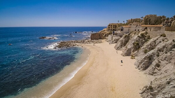 Misiones Del Cabo Beach Resort bietet zwei Strände Der Playa Del Rey Strand in einer abgelegenen Bucht zum Schwimmen und Schnorcheln (Kugelfisch, Einsiedlerkrebs, Rays usw.) und The Monuments Beach, an dem Sie surfen können. Zwischen den beiden Stränden gibt es atemberaubende Gezeitenbecken. Sie können auf Ihrem Deck sitzen und die unendlichen Veränderungen des Ozeans in absoluter Privatsphäre beobachten. Ein zwei bis drei Minuten zu Fuß durch das Resort führt Sie hinunter zum einsamen Strand Playa Del Rey. Dieser sehr abgelegene Strand bietet fantastisches Schnorcheln und Privatsphäre.