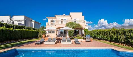 Die Villa im modernen Beachhouse-Style wurde 2011 neu errichtet sowie 2016 grundlegend saniert und mit hochwertigen Möbeln, großem privaten Pool und Garten geschmackvoll und modern eingerichtet. Es ist durch dein Einbau großer Fensteranlagen hell und freundlich und liegt nur 300m vom Meer entfernt. Die Zimmer verteilen sich über zwei Etagen, im Erdgeschoss befindet sich neben Wohnzimmer und voll ausgestatter Küche auch zwei großzügige Terrasse mit Blick auf privaten Pool, Garten mit Sonnenliegen und Gartenmöbeln, BBQ-Grill und Outdoorküche. Weiterhin befindet sich im Erdgeschoss ein Schlafzimmer (Doppelbett) mit eigenem Zugang zum Pool sowie ein Bad mit ebenerdiger Regen-Dusche. Ebenso befindet sich im Erdgeschoss der kleine Hauswirtschaftsraum mit allen notwendigen Utensilien. Im Ersten Obergeschoss befinden sich zwei Schlafzimmer, davon ein Masterzimmer, mit direkten Zugang zur Trasse, Bad en-Suite mit ebenerdiger Regen-Dusche. Das anderen Schlafzimmer beinhaltet 1x Queensizebed und Blick auf den Pool sowie ebenso ein Bad en-Suite und Badewanne. Weiterhin befindet sich auf dieser Etage eine großzügige Sonnenterasse von welcher eine weiter Treppe führt auf die Dachterasse und Longe - von hieraus sehen Sie die Berge, das Meer und genießen unvergessliche Sternstunden.