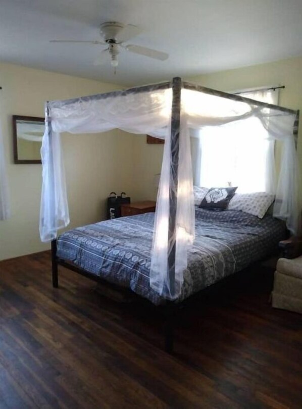 The house is tucked away off the main roadway. A large lot close to a creek, with benches, a hammock, fire pit for a relaxing rejuvenating stay. Very comfortable