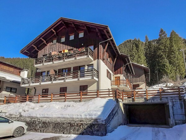 Alba 2 km von Canazei: Kleines Mehrfamilienhaus "Roacia". Ruhige, sonnige Lage am Hang, direkt am Waldrand, 1 km vom Skigebiet. Im Hause: Zentralheizung, Heizung nur verfügbar von 01.Dez. - 01.Mai.. Im Winter bitte Schneeketten mitbringen. Treppenweg bis zum Haus. Öffentliche Parkplätze auf der Strasse. Lebensmittelgeschäft 1 km, Supermarkt 1 km, Restaurant, Bar 500 m, Bushaltestelle 100 m. Sessellift 1 km, Skibushaltestelle 100 m. Nahe gelegene Sehenswürdigkeiten: Funivie Belvedere e Ciampac 1 km.