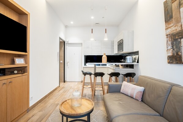 In Cannes erwartet Sie dieses 32 m² große Apartment für bis zu 4 Gäste mit 1 Schlafzimmer, 1 Wohnzimmer und 1 Badezimmer. Die Unterkunft bietet Ihnen eine gut ausgestattete Küche, Klimaanlage, Fernseher und WLAN für Ihren Komfort. Dank stufenlosem Zugang und privatem Aufzug gelangen Sie bequem in die Wohnung.
