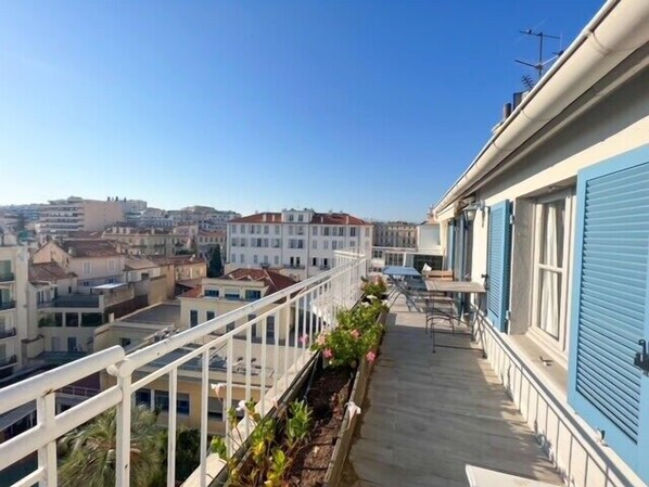 Enjoy two lovely terraces, fully furnished, ideal for sunny breakfasts or evening drinks under the Cannes sky