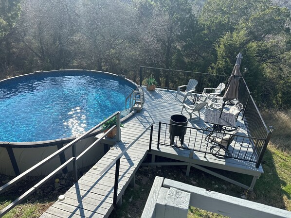 Sonny Hillside Hideaway has all the best to offer for your Canyon Lake Get Away. This 3 bedroom 2 1/2 baths. All bedrooms are upstairs. Private pool, hot tub and outdoor shower is fully stocked. If you forgot it, we got it! Keyless entry followed by a “Welcome”basket upon arrival. Welcome baskets also in bathrooms. Shampoo, conditioner and body wash in all showers. Huge kitchen with room for all to gather. Dry bar area in washroom. You will find a coffee bar in the kitchen as well as coffee stations in some bedrooms, (coffee provided.) Fresh herbs to use for cooking, foil, baggies, etc and all the seasoning you could ask for. We are all about our beautiful crystal clear lake and our rock bottom rivers make sure you take time to enjoy them. Nothing like a day by the pool grilling. (Grill is gas and charcoal.) Enjoy a Texas star lit night in the hot tub. There is also an outdoor pizza oven. (Ask about our pizza kits.) If there is no burn ban enjoy the fire pit in the back yard with some smores and good conversation. You will also find a dog washing station on back yard deck with shampoo and dog towels for your fur babies, next to the outdoor shower. There are many stairs and decks. There is also plenty of room to park your boat or jet ski. Conveniently located a few blocks from boat ramp #2 with a beachside area to enjoy the lake. Take a golf cart ride to feed the neighborhood deer. Reserve breakfast through our concierge and enjoy it along with the backyard scenery and your gourmet coffee. Take a day trip and drive the wine trail from here to Fredericksburg. We also have wonderful distilleries in the Texas Hill Country. Please note, this is a pet friendly property. However, if you are bringing a pet there is a $75 pet cleaning fee. No exceptions. Do not complain about a dog home smelling like dog. We do our VERY best to prevent this. You will be asked to sign a rental agreement and waiver.