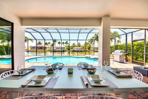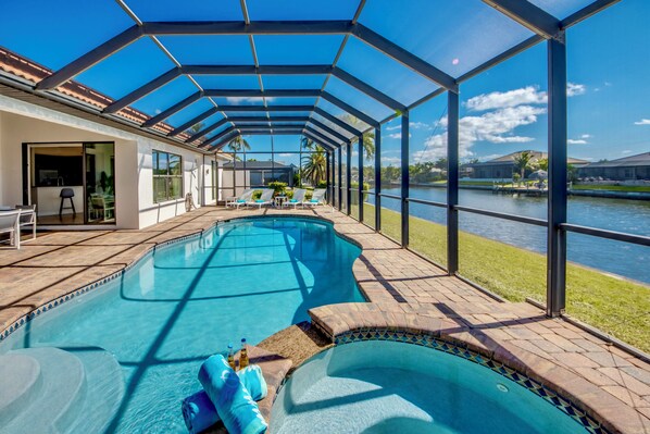 Die moderne Villa Destiny befindet sich an einem breiteren Kanal mit Golfzugang im schönen Südwesten von Cape Coral.