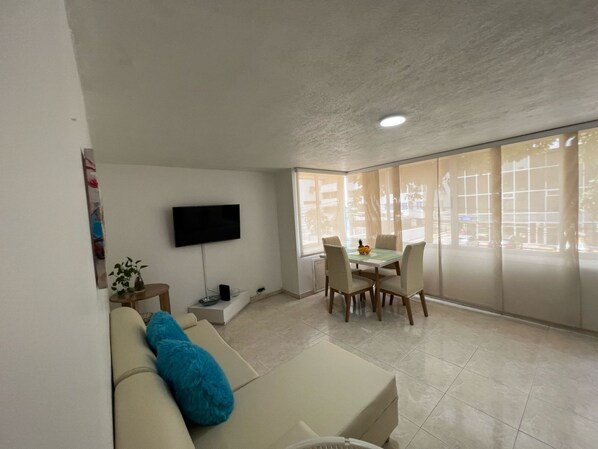 Dank der ausgezeichneten Lage (El Laguito) ist dieses Apartment zu Fuß nur 10 Minuten entfernt von: Castillo Grande Strand und Strand von Bocagrande. Ebenfalls höchstens 15 Minuten entfernt: Playa del Laguito und Plaza Playa de Castillo Grande.