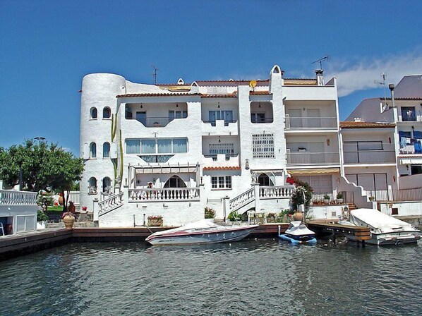 Schönes, komfortables Dreifamilienhaus "Port Banyuls". Im Ortsteil Port Banyuls, 1.2 km vom Zentrum von Empuriabrava, sonnige Lage, 1.5 km vom Meer. Im Hause: Wireless LAN, Waschmaschine. Lebensmittelgeschäft, Supermarkt 300 m, Einkaufszentrum, Restaurant, Bar, Bushaltestelle 1.6 km, Sandstrand "Empuriabrava" 1.5 km. Sporthafen 1.5 km, Tennis 1.3 km, Minigolf 400 m, Radweg 800 m. Nahe gelegene Sehenswürdigkeiten: Centro Aeródromo y túnel del viento 1 km, Parque Acuático Roses 5 km, Casino y festival de Perelada 12 km, Museo Dalí de Figueres 15 km, Ruïnes de Sant Martí de Empuries 21 km, Cadaqués 21 km. Bitte beachten: Weitere Unterkünfte sind buchbar. Das Haus liegt an der Hauptstrasse von Empuriabrava, neben dem Kanal. Bootsanlegestellen stehen zur Verfügung (Länge max. 12 m, 9 EUR/Tag).