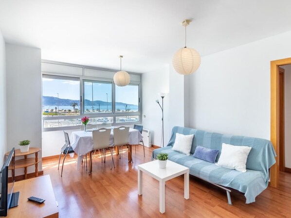 Modernes Apartment mit Meerblick. Liegt direkt vor dem Strand von Empuriabrava.Befindet sich im Ancora-Gebäude. Mit Kapazität für 6 Personen.Es besteht aus 2 Doppelzimmern, einem Doppelbett und 2 90-cm-Betten, 1 Badezimmer mit Badewanne, einem Esszimmer mit Küchenzeile und einem Schlafsofa.Neben dem Strand und den Geschäften, kein Auto erforderlich.Voll ausgestattet mit Geräten aller Art (Kühlschrank, Mikrowelle, Backofen, Waschmaschine, Trockner, Geschirrspüler, Geschirr/Besteck, Küchenutensilien, Kaffeemaschine und Toaster)