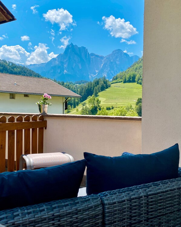 Das Ferienhaus "Sonnenresidenz Garden" liegt im malerischen Dorf Kastelruth, nur 3 km oder 5 Autominuten von der berühmten Seiser Alm entfernt, und ist die ideale Unterkunft für einen entspannten Urlaub inmitten der Natur und einer atemberaubenden Landschaft. Sie ist rustikal und doch modern mit Holzmöbeln eingerichtet, die zusammen mit dem warmen Licht, das durch die Fenster einfällt, eine entspannte und gemütliche Atmosphäre schaffen, ideal für Ihren Urlaub. Die 60 m2 große Ferienwohnung besteht aus einem Wohnzimmer, einer gut ausgestatteten Küche, einem Schlafzimmer (mit einem Queensize-Bett) sowie einem Badezimmer und bietet somit Platz für 2 Personen. Zur Ausstattung gehören außerdem WLAN, Satelliten- und Kabelfernsehen. Die Ferienwohnung verfügt außerdem über eine schöne, möblierte Terrasse, auf der die Gäste morgens bei einer Tasse Kaffee entspannen und den Blick auf die Berge genießen können. Eine Auswahl an Geschäften, Restaurants, Bars und Cafés finden Sie im Dorf Kastelruth, das Sie nach einer 5-minütigen Fahrt (2,5 km) erreichen können. Dies ist auch die perfekte Unterkunft für jede Jahreszeit. Im Sommer können die Gäste auf den zahlreichen Wanderwegen der Seiser Alm wandern oder sich in den nahe gelegenen Klettergebieten austoben. Im Winter befinden sich die Skigebiete Dolomiti Superski ganz in der Nähe der Unterkunft (23 Autominuten; 15 km). Die fantastische Winterlandschaft rund um das Haus und die Nähe zu den Skigebieten wird Wintersportler begeistern.